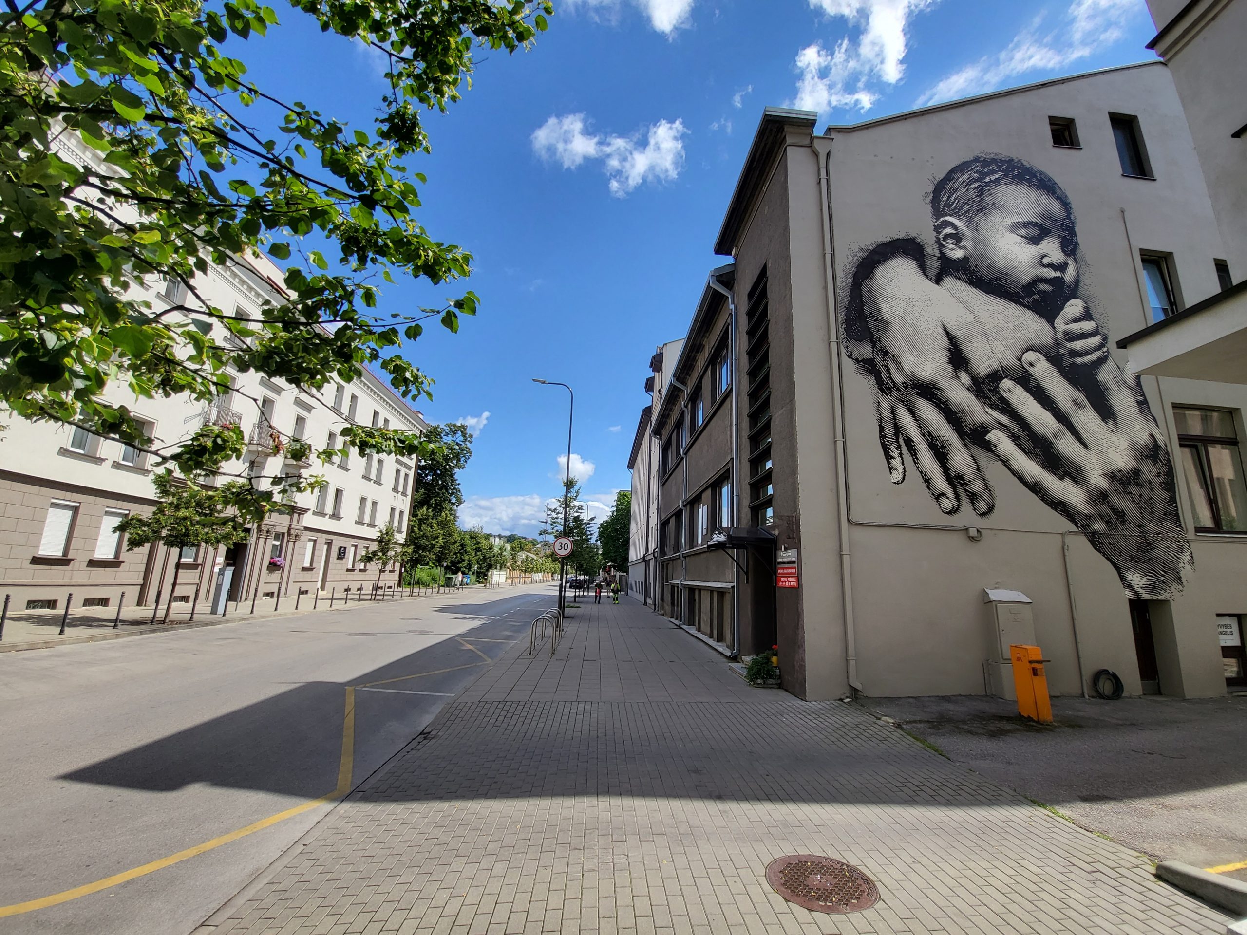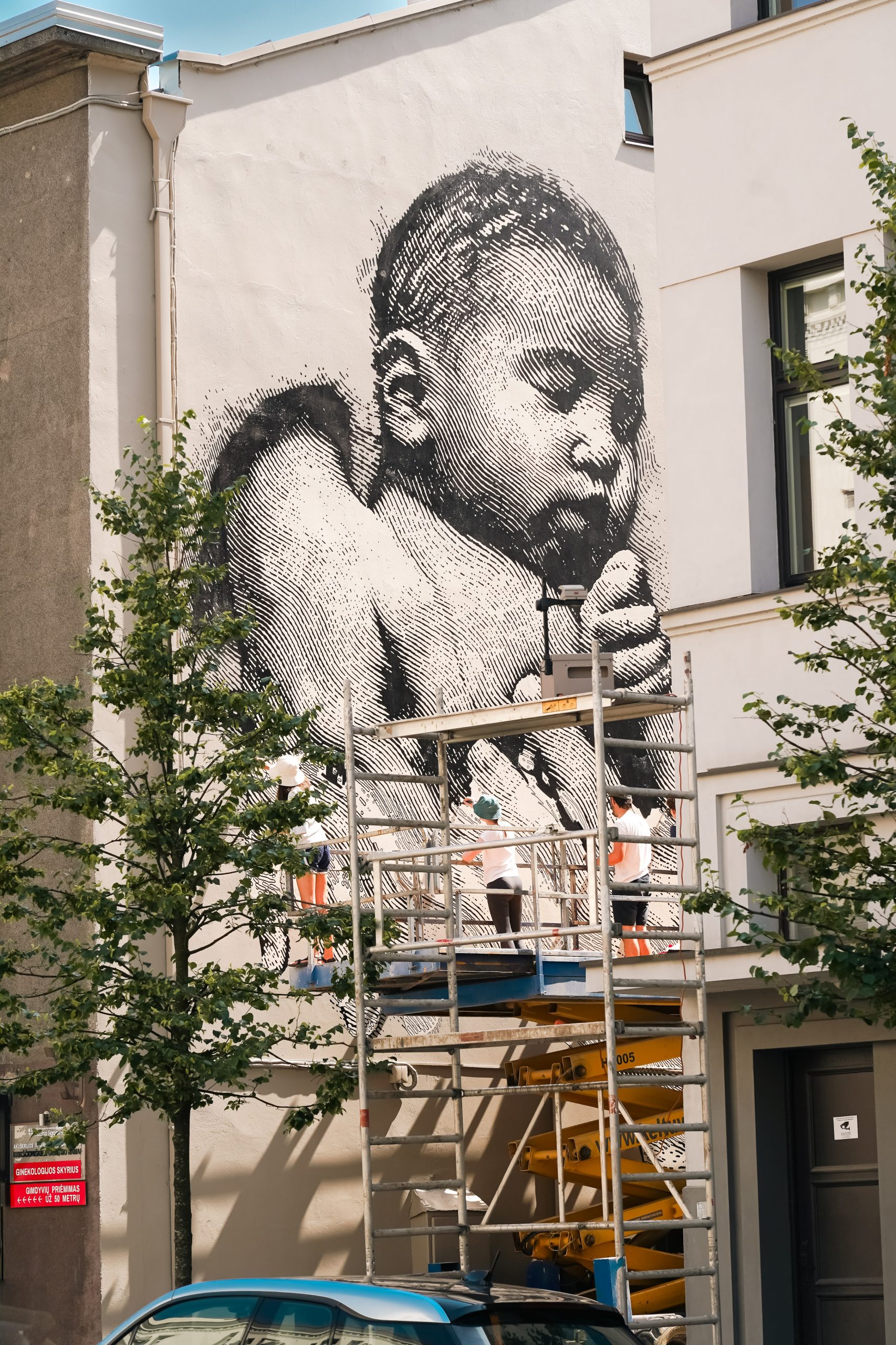 Kauno cente veikiantys LSMU Kauno ligoninės Krikščioniškieji gimdymo namai nuo šiol trauks praeivių akį – ant pastato sienos nugulė dekoro ir dizaino studijos „Gyva grafika“ darbas „Gija“.