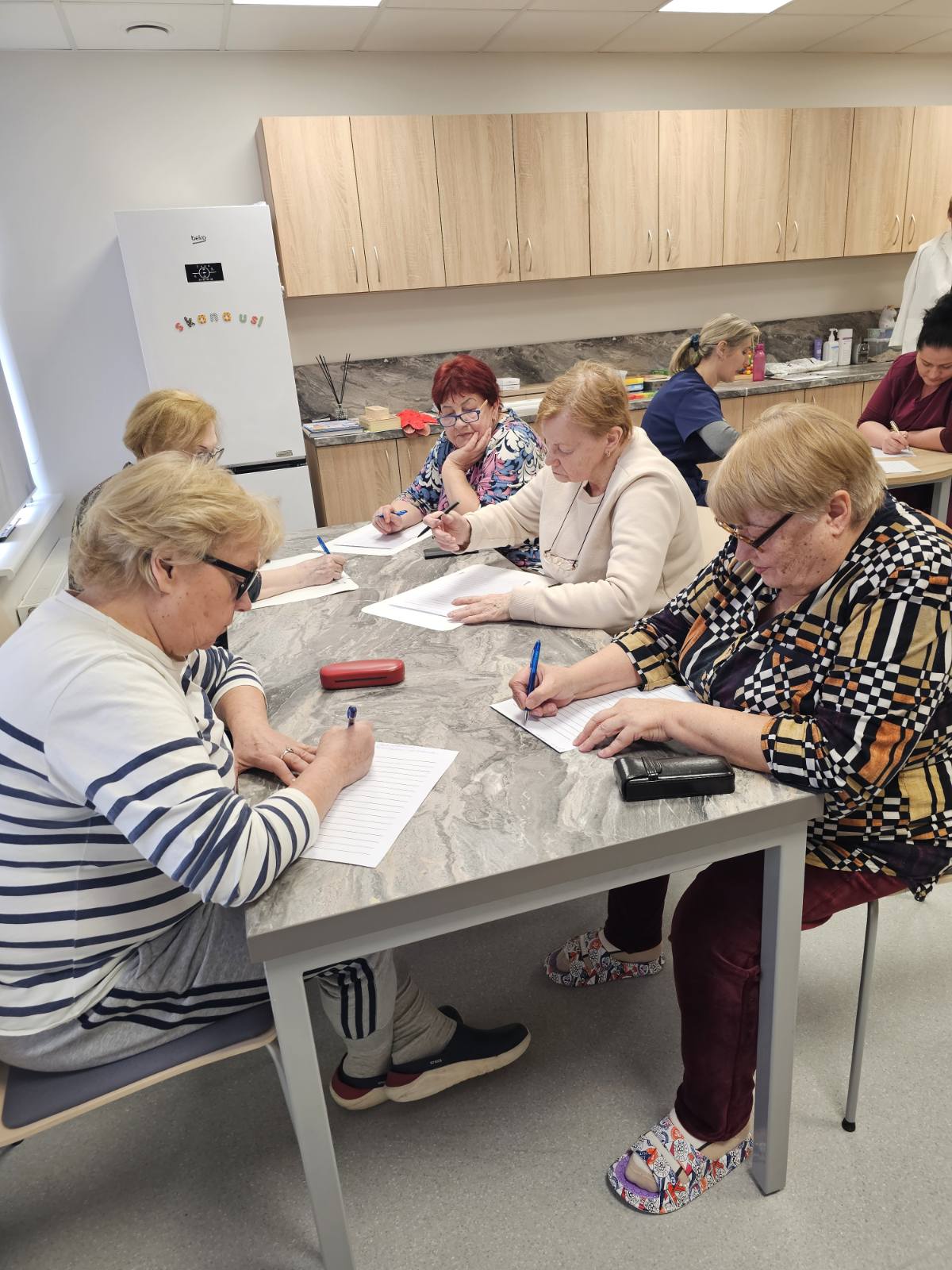 LSMU Kauno ligoninės Geriatrijos centro dienos stacionaro kolektyvas nestokoja gražių iniciatyvų. Kovo 15 d. medikai pakvietė savo pacientus kartu su tūkstančiais kitų Lietuvos gyventojų rašyti Nacionalinį diktantą. Pagyvenę žmonės puikiai susitvarkė su nelengva lietuvių kalbos rašyba.